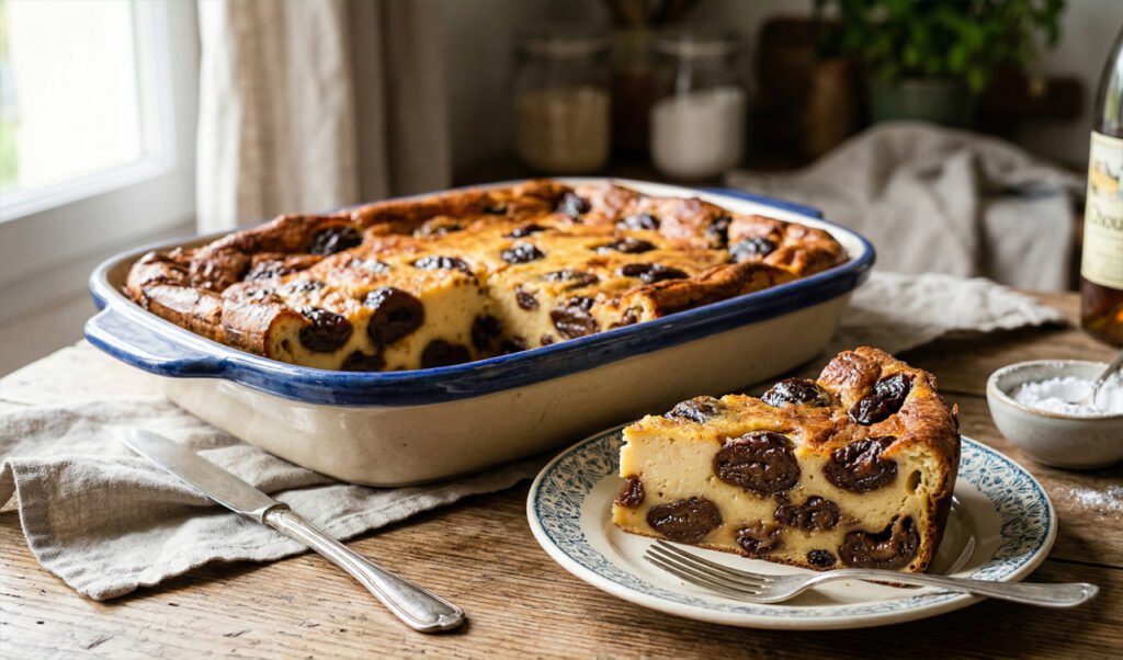 Disposez les pruneaux dans le fond du plat et versez l’appareil par-dessus.